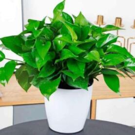 是天南星科喜林芋属植物,属于攀藤观叶花卉。性喜温暖、潮湿环境,藤长可达数米,节间有气根,叶片会越长越大,叶互生,常绿。萝茎细软,叶片娇秀。水养很简单,保证2至3天换一次水,配以简单的营养素。绿萝具有很高观赏价值,蔓茎自然下垂,既能净化空气,又能充分利用了空间,为呆板的柜面增加活泼的线条、明快的色彩。