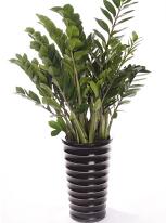 又名,美铁芋、金松。地上部无主茎,不定芽从块茎萌发形成大型复叶,小叶肉质具短小叶柄,坚挺浓绿;地下部分为肥大的块茎。羽状复叶自块茎顶端抽生,叶轴面壮,小叶在叶轴上呈对生或近对生。叶柄基部膨大,木质化;每枚复叶有小叶6~10对,具5年以上寿命,被新叶不断更新。[